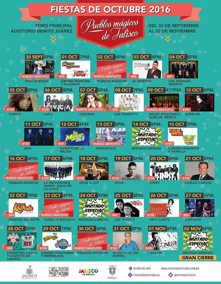El día 7 de octubre se presentó en el foro Principal de las fiestas de octubre Azucena la de Jalisco. Donde hubo poco público que fue a ver el espectáculo. Azucena nos comentó que en este momento está trabajando para sacar su segundo sencillo. Esta rsemana inicia el día 10 de octubre Bunbury el día 10 de octubre, 11 reik y el día 12 evento de la Mejor. Donde en estas fechas se espera gran entrada.
