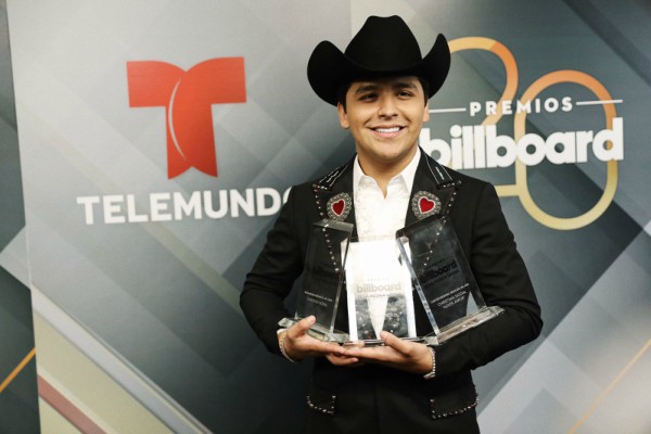Las Vegas, Nevada 26 de abril del 2018. El cantante Christian Nodal se convierte en el artista más premiado del regional mexicano en la edición número 20 de los Latin Billboard al recibir 3 premios como Artista del año debut, artista regional mexicano del año solista y canción regional mexicana del año “ Adiós amor “ logrando poner en alto la música de su país, México.
