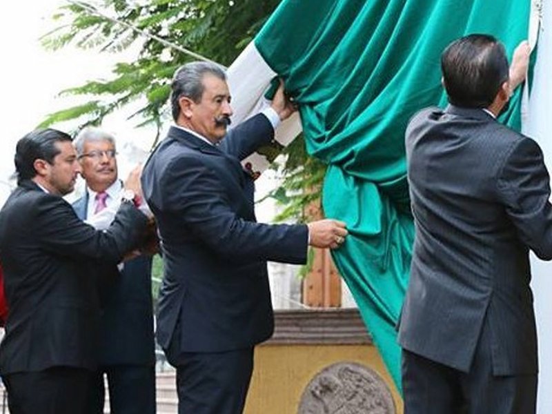 La primera de ellas, fue el asta que se ubica en la Plaza Principal frente al Teatro Pueblo en donde el Presidente, Estrada Medina, acompañado el Síndico, Nicolás Hermosillo García y el Secretario del Ayuntamiento, Daniel Vázquez Zavala colocaron la bandera y la dejaron a media asta.