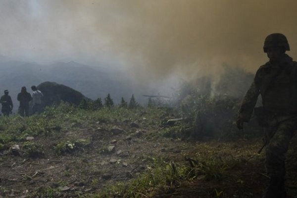 Tras lo anterior, la Secretaría de la Defensa Nacional, a través de la 21 Zona Militar con sede en la capital michoacana, realizó un operativo en el cual fue incinerada una superficie de 5 mil 726 metros cuadrados de marihuana.
