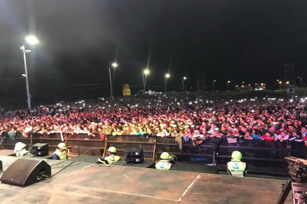 Aunque la banda llegó con bastante tiempo al lugar, los nervios de no saber cuál sería la respuesta de la gente los mantuvo inquietos en backstage. Fue en punto de las 6:15pm que una voz en off anunciaba la presencia de la agrupación y desde ese momento los gritos ensordecedores de las 40 mil personas ahí reunidas se dejaron escuchar.