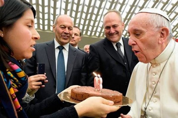 Un grupo de peregrinos mexicanos lograron convencer al Papa Francisco para que soplara las velas de un pastel que le regalaron con motivo de su 80 cumpleaños, que tendrá lugar el próximo sábado 17 de diciembre